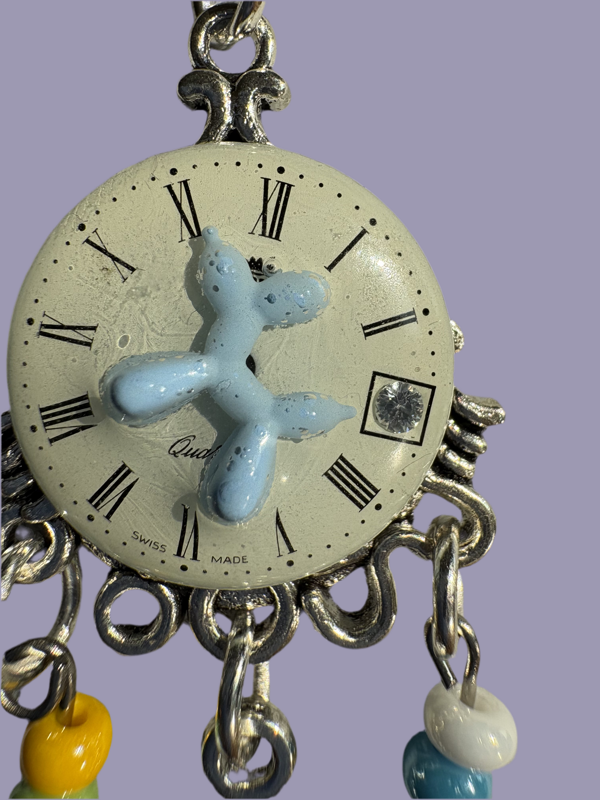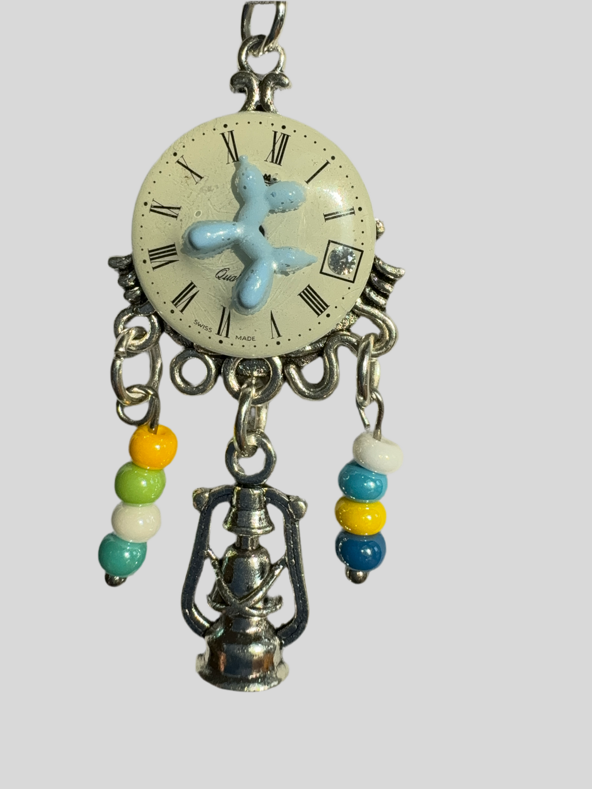 Questo ciondolo originale combina il fascino del tempo con elementi giocosi e simbolici, creando un gioiello unico e ricco di personalità.