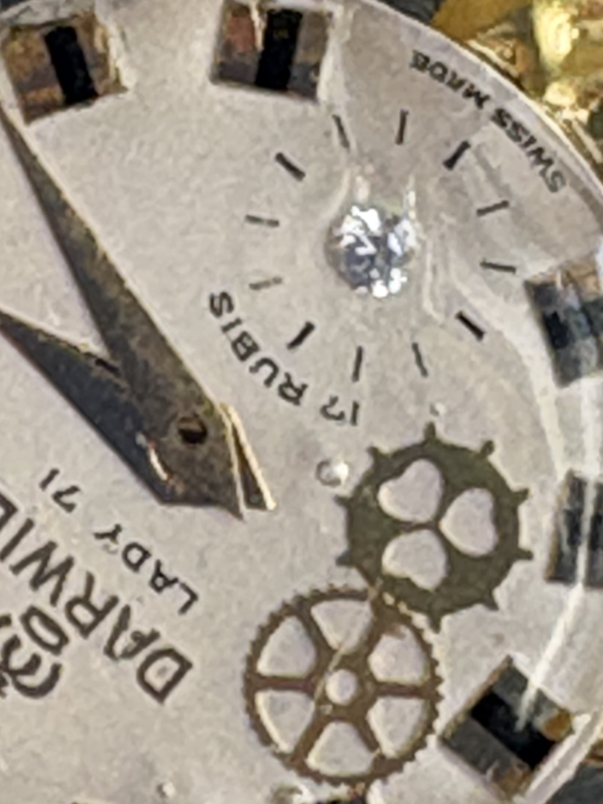 - Quadrante di orologio vintage recuperato , con indici dorati e piccoli ingranaggi applicati per un tocco steampunk.