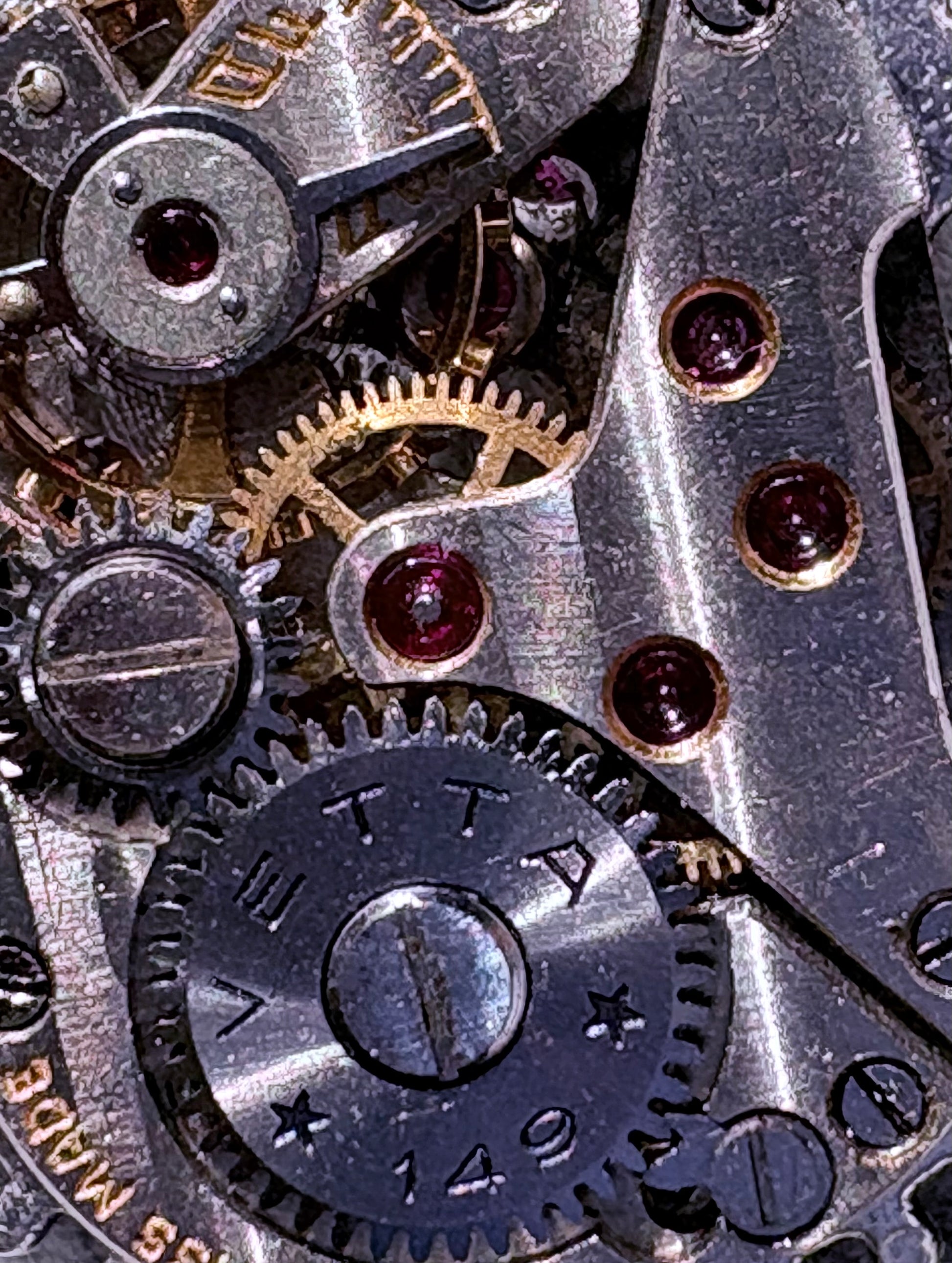 - Movimento orologiero vintage , con ingranaggi in ottone e rubini sintetici che raccontano la bellezza della micro-meccanica.