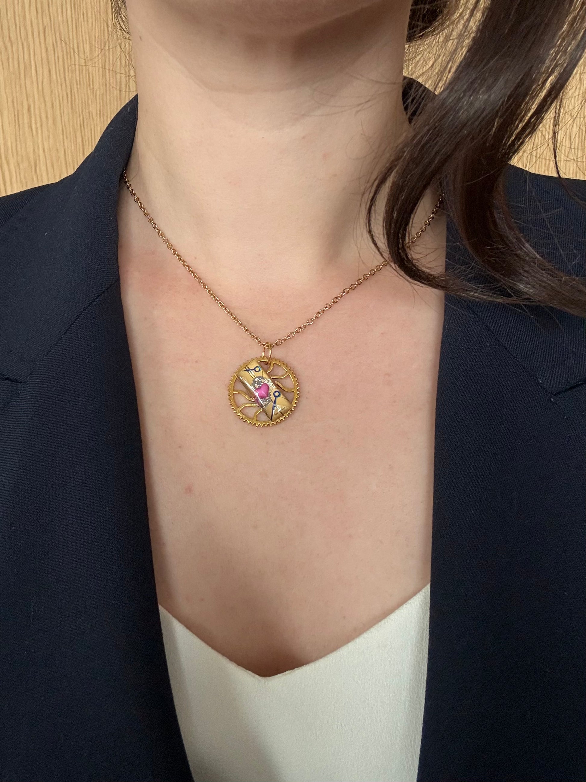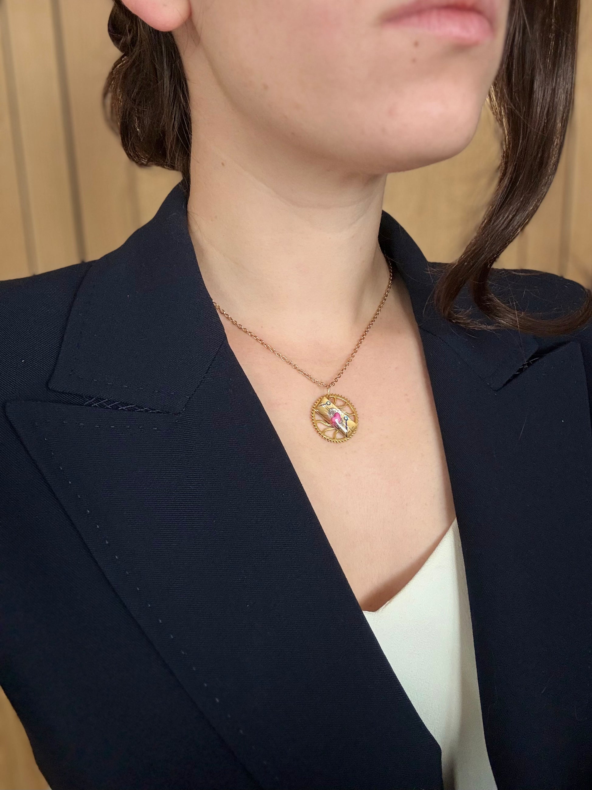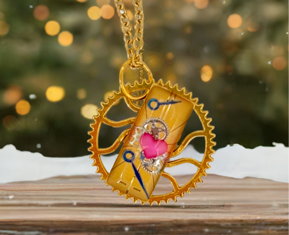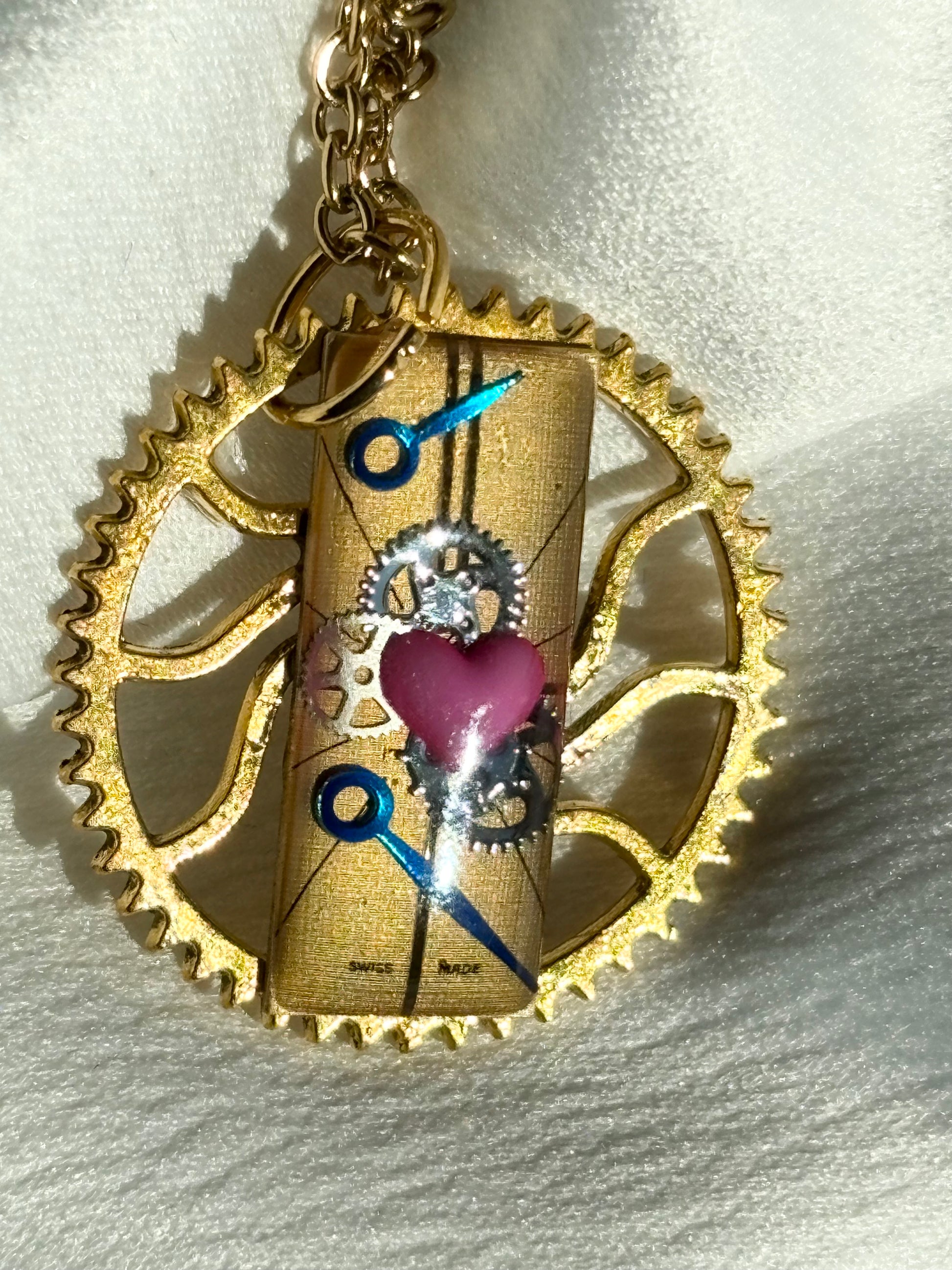 Questa collana è un connubio perfetto tra eleganza romantica e precisione industriale. Realizzata a mano, racchiude dettagli meccanici e simbolici che trasformano un semplice accessorio in un pezzo unico e ricco