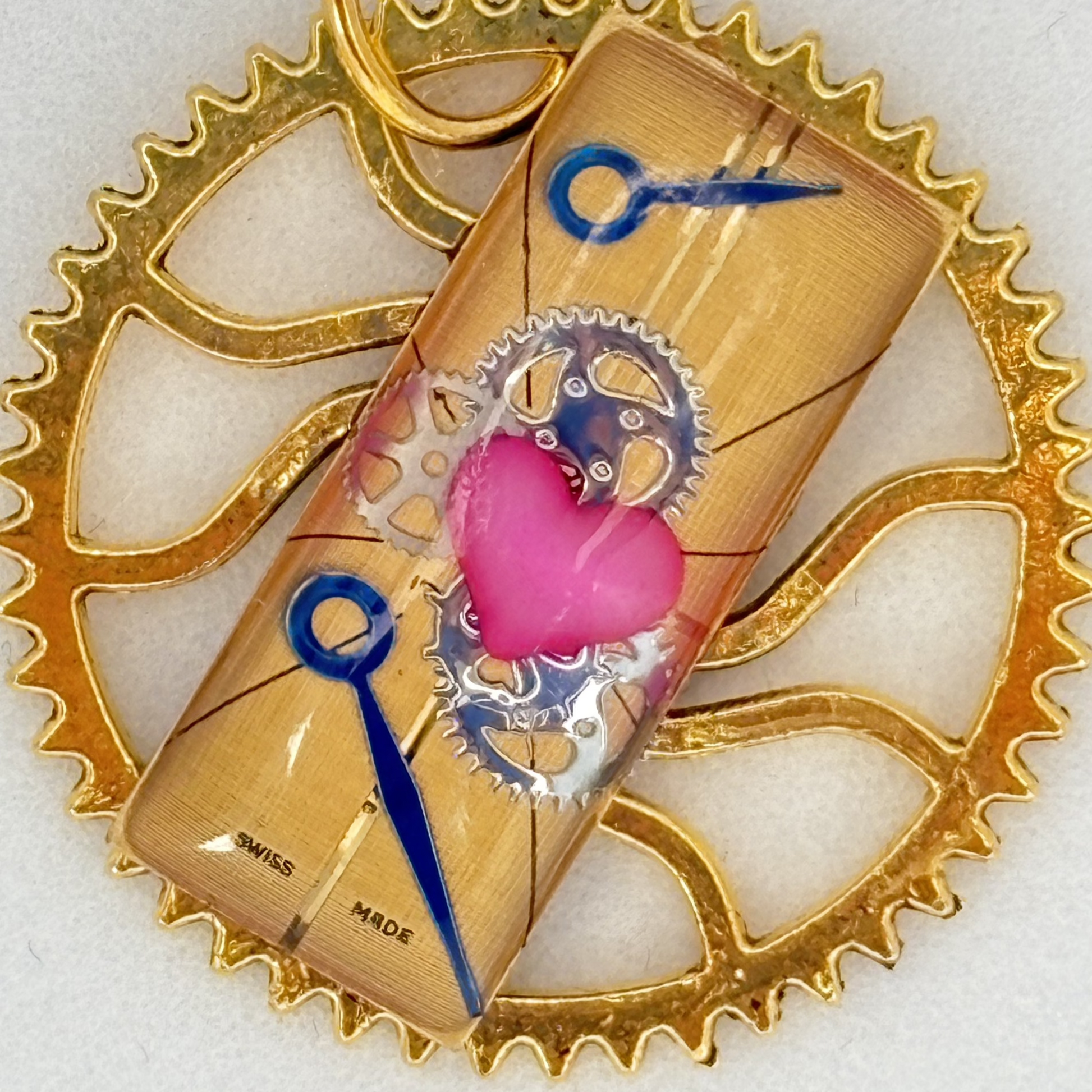 • Pendente con quadrante centrale dell'orologio rettangolare, decorato con ingranaggi dorati e lancette