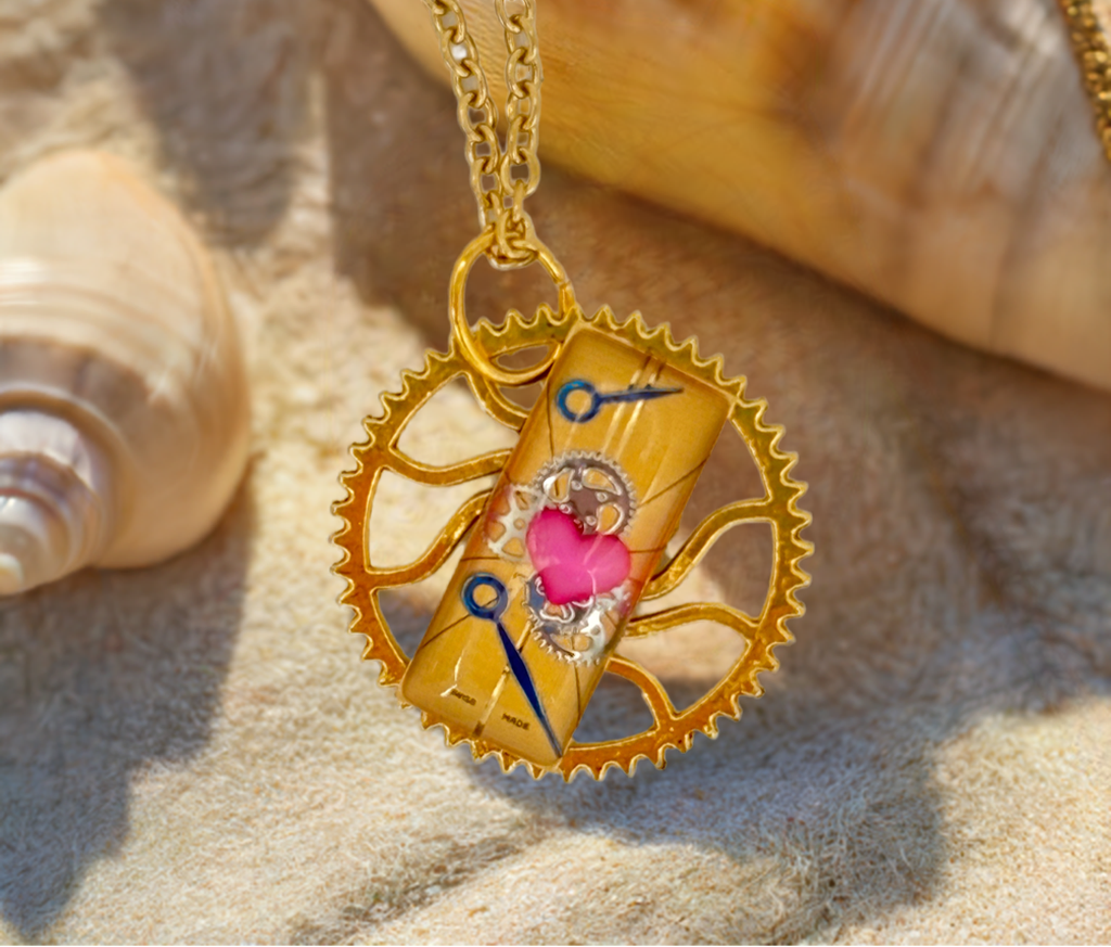 ♻️ Sostenibilità e stile: Ogni collana è realizzata utilizzando materiali di recupero provenienti da vecchi orologi di prestigio, dando nuova vita a elementi senza tempo.