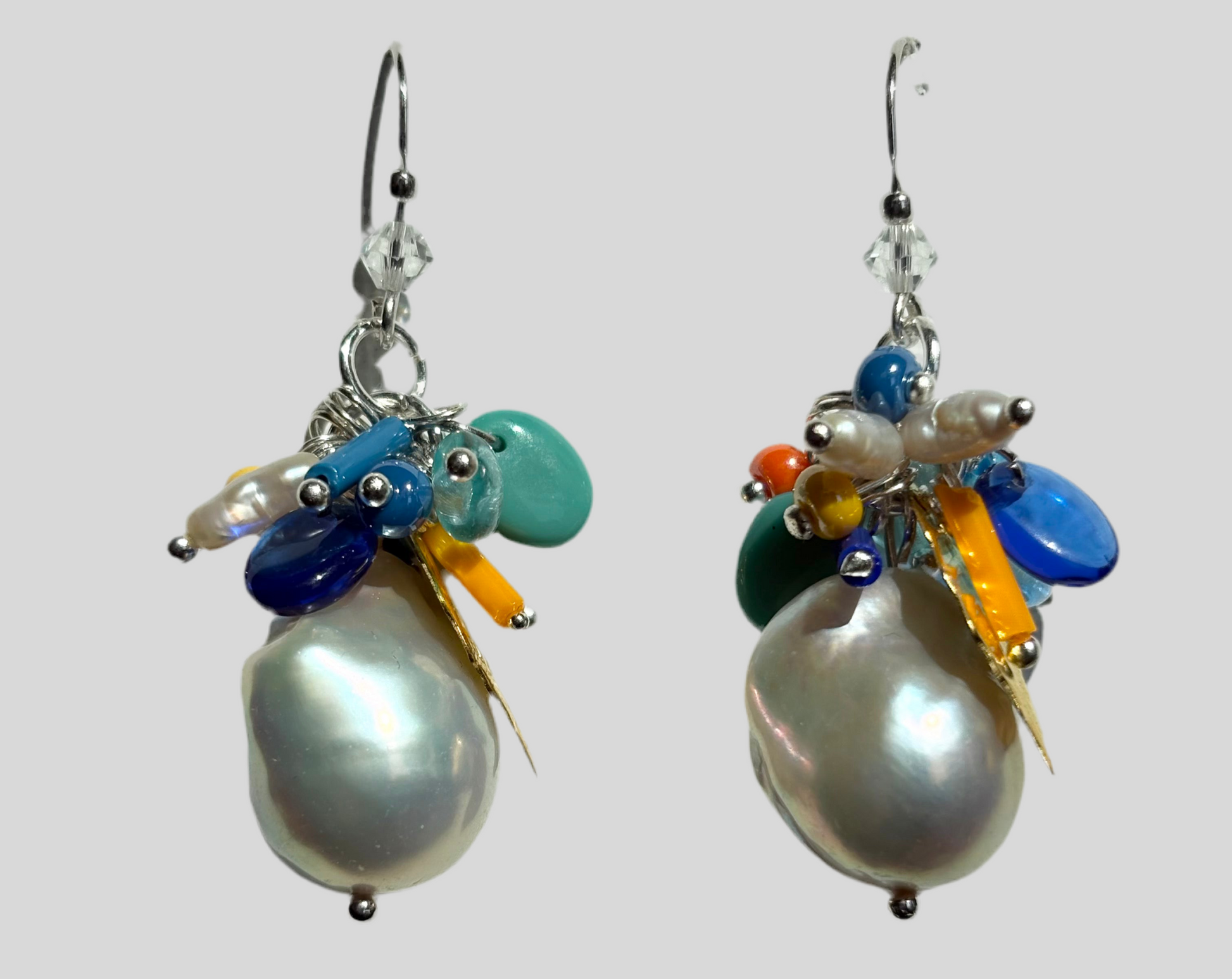 Questi orecchini sprigionano freschezza e luce, unendo la purezza della perla alla vivacità delle pietre colorate, per un look raffinato ma ricco di personalità.