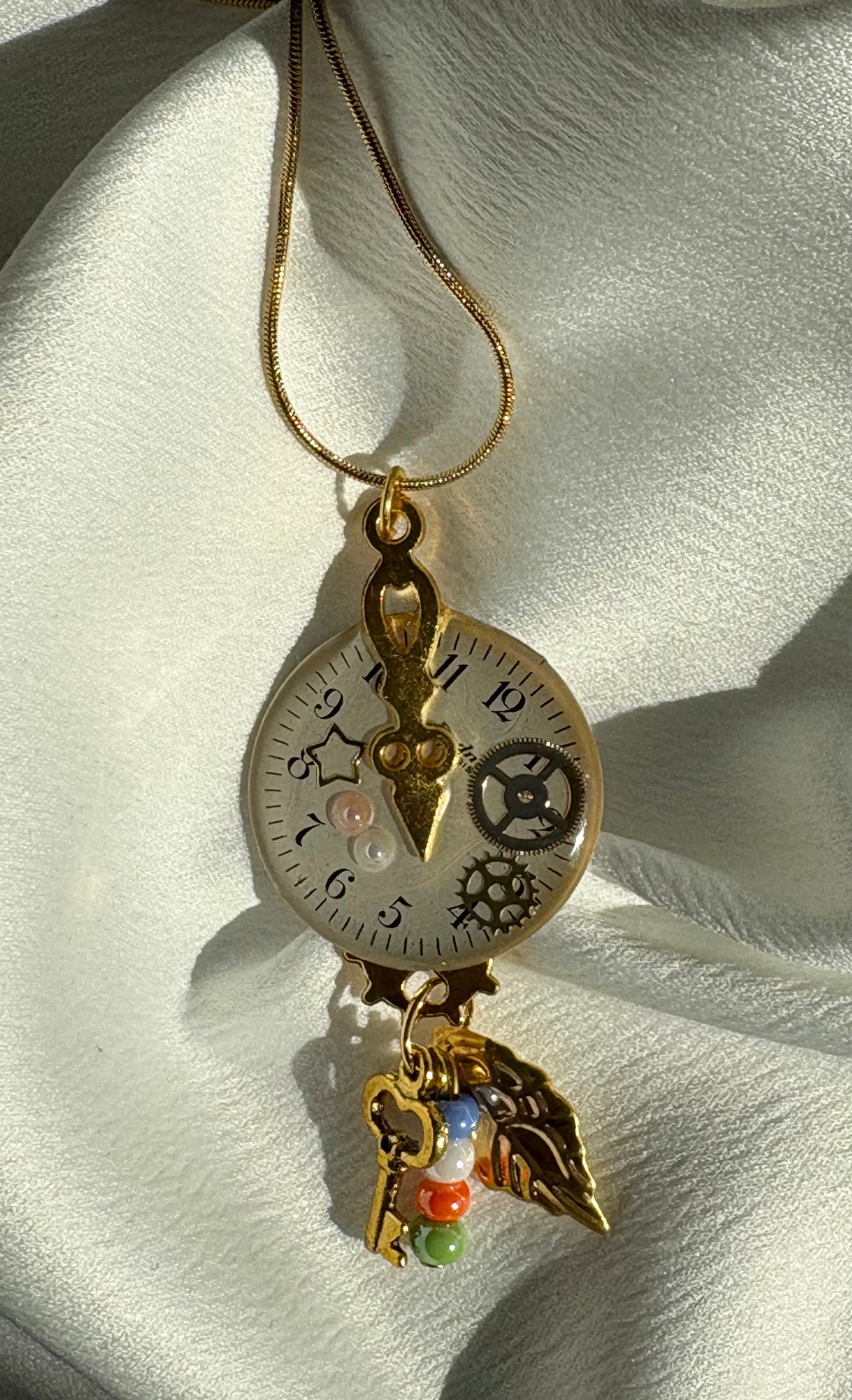 Un gioiello che fonde il fascino degli orologi antichi con elementi simbolici, perfetto per chi ama gli accessori dal significato profondo e dallo stile unico.